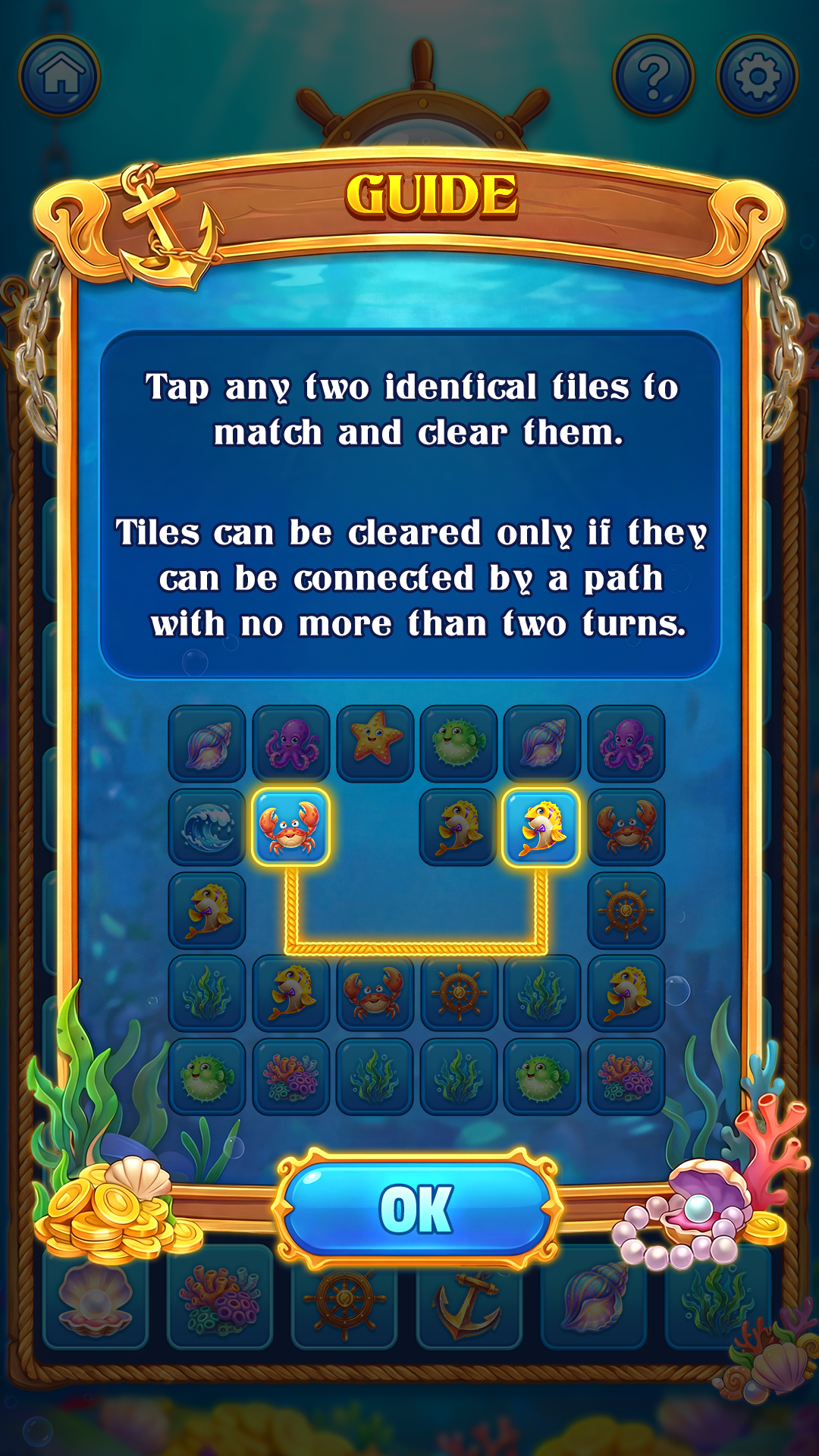 Dive into the most addictive link-matching gameplay. Connect identical sea creatures with simple, intuitive controls designed for smooth and satisfying clearing.
